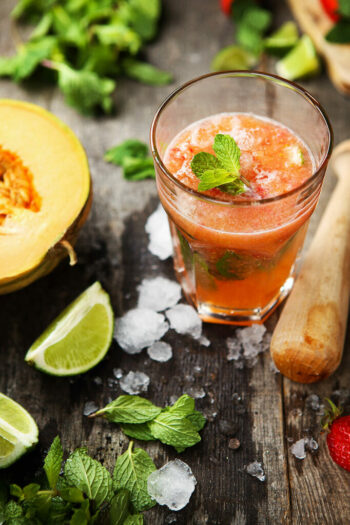 4/ Garnish with half a strawberry, a raspberry and bird’s eye chilli.
